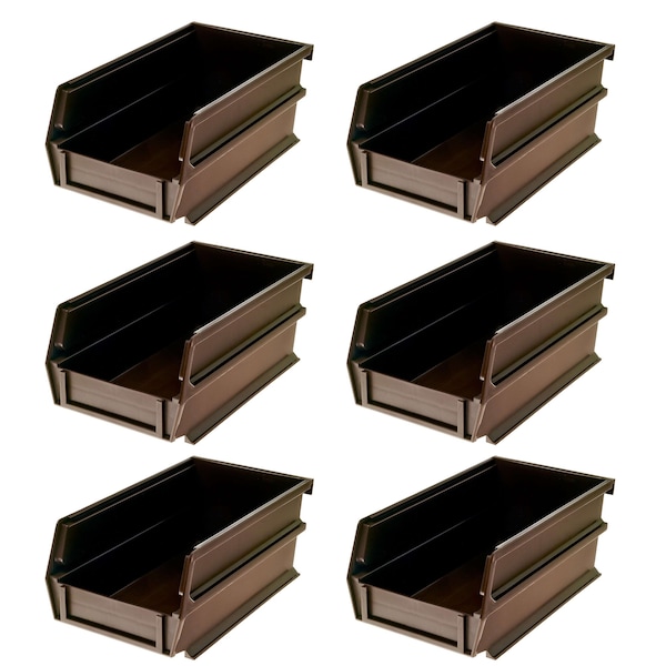 Stacking Hanging Interlocking Bins, Polypropylene, Brown, 7-3/8" L x 4-1/8" W x 3" H, 6 CT