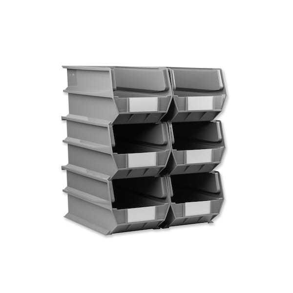 Stacking Hanging Interlocking Bins, Polypropylene, Gray, 14-3/4" L x 8-1/4" W x 7" H, 6 CT