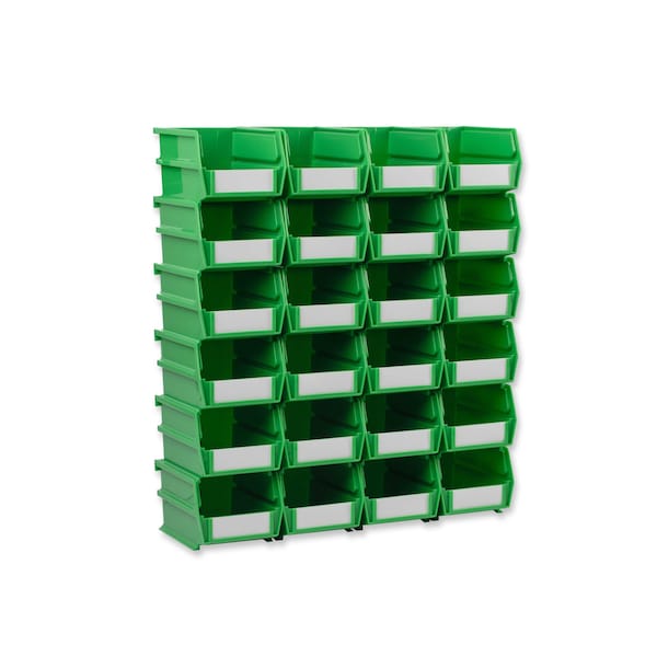 Stacking Hanging Interlocking Bins, Polypropylene, Green, 5-3/8" L x 4-1/8" W x 3" H, 24 CT