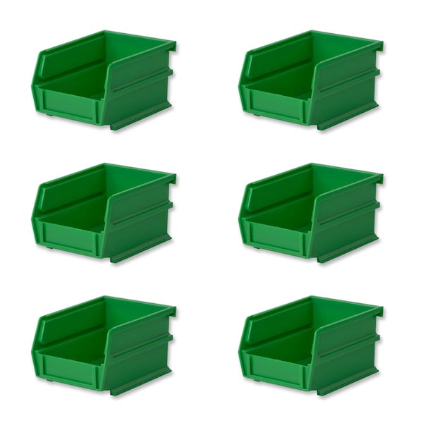 Stacking Hanging Interlocking Bins, Polypropylene, Green, 5-3/8" L x 4-1/8" W x 3" H, 6 CT