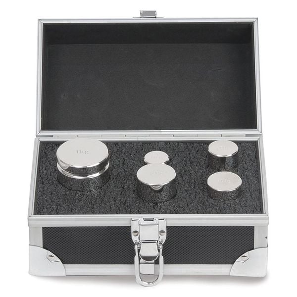 Calibration Weight Kit, Nominal Mass 1kg to 100g, Calibration Weight Class 4, Calibration Certificate No Certificate, Calibration Weight Style Cylinder, Calibration Weight Material 316 Stainless Steel, Measurement Type Metric, Includes 100g Weights, 1kg, 200g, 300g, 500g, Case, Number of Pieces 5, Finish Satin, Calibration Weight Compliance Agency ANSI, ASTM