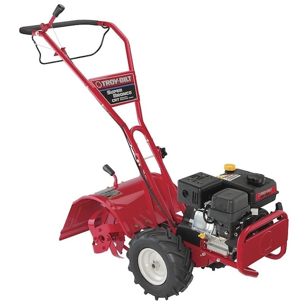 208cc OHV TroyBilt engine with bumper Cast iron transmission with bronze gear drive Counter rotating 1 forward and 1 reverse speed 16 tilling width 17 tine shield 6 tilling depth 10 Bolo tines 13 x 5 ag tires