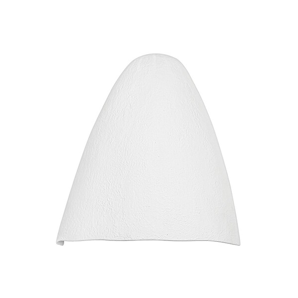Flush against the wall and with the light source hidden, this hooded sconce was inspired by the built-in lighting found inside adobe homes. The intentionally imperfect edge at the bottom of the shade and the heavily-textured White Gesso finish add to the fixture's organic vibe. Place Manteca on a white wall for an ultra-clean, modern monochromatic look.