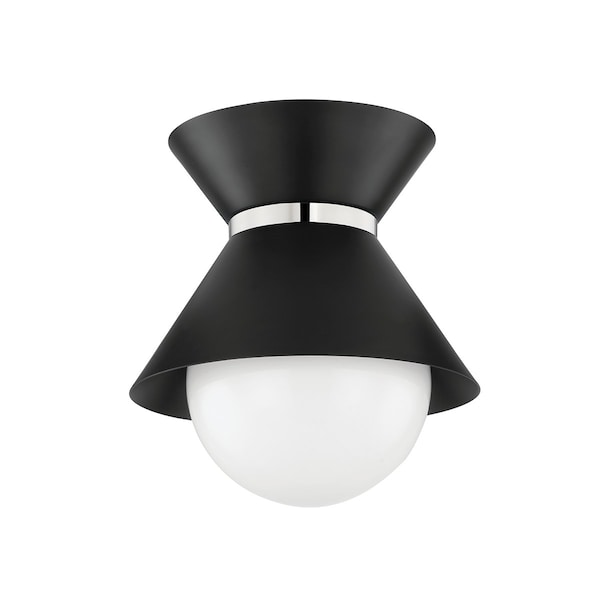 Scout 1 Light Flush Mount 10 In. Soft Black/Polished Nickel