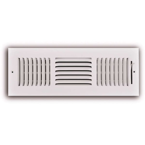 The 103M 14X04 is 14 in. x 4 in. 3-way air register used for wall or ceiling openings. The stamped face allows for 3-way air deflection. Our Smooth glide technology ensures rattle free and quiet airflow from your central air system. Smooth glide also provides for smooth opening and closing of your back dampers. Our high-quality product will ensure years of continuous use.Wall or ceiling registers controls airflow into a roomDampers control the amount and direction of airflowWhite powder coat finishMade from high quality steelSmoothGlide Damper