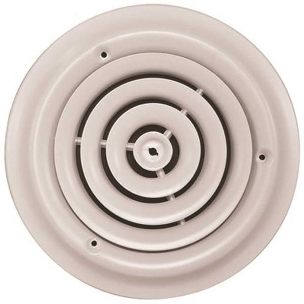 The 800 series is a round air diffuser. This step down ringed diffuser is used to cover duct openings. Simple, versatile, east to operate, and easy to install. Our product is constructed to ensure maximum airflow and the simple design will compliment your home decor. Product features: high quality steel, white powder coat finish, step down diffuser rings deflect air stream 360°.Duct diffuser streams air into your roomMade of high quality steelWhite powder coat finishStep down diffuser rings deflect air stream 360°