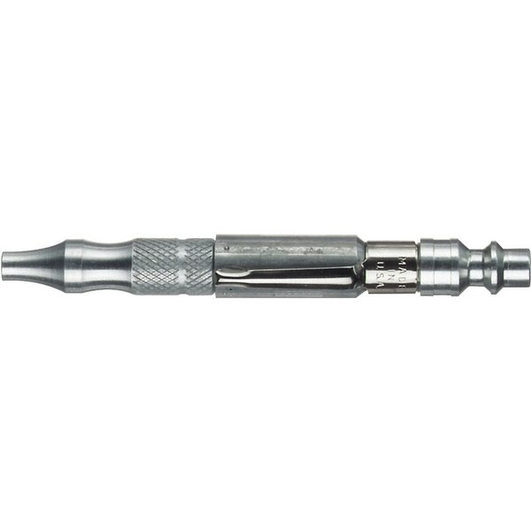 Adjust from low air to a full volume flow Recommended air pressure to 150 psi maximum Knurled nozzle makes handling easy Complete with handy pocket clip Fits all industrialMilton design 14 in coupler bodies