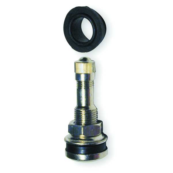 Clamp-In Valve, Product Type Tubeless Tire Valve, Mounting Type Clamp-In, Valve Stem Angle 180 Degrees , Valve Shape Straight, Valve Size Standard Bore, Thread Size 0.305-32, Compatible Vehicle Type Trucks, Passenger Cars, Minimum Operating Air Pressure 0 psi, Maximum Operating Air Pressure 130 psi, Color Chrome, Overall Length 1 1/4 in, Material Metal, Features Rubber Grommet forms a Seal when Valve is clamped to Rim, Includes Rubber Grommet, Maximum Rim Hole Size 0.625 in