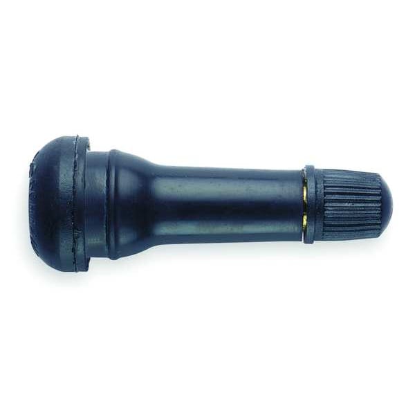 Snap-In Valve, Product Type Tire Valve, Mounting Type Snap-In, Valve Stem Angle 180 Degrees , Valve Shape Straight, Valve Size Standard Bore, Thread Size 0.305-32, Compatible Vehicle Type Golf Carts, Hand Trucks, Other Specialty Vehicles, Wheelbarrows, Minimum Operating Air Pressure 0 psi, Maximum Operating Air Pressure 60 psi, Color Black, Overall Length 1 1/2 in, Material Rubber, Includes Cap, Maximum Rim Hole Size 0.453 in, Standards TR414, Package Quantity 2