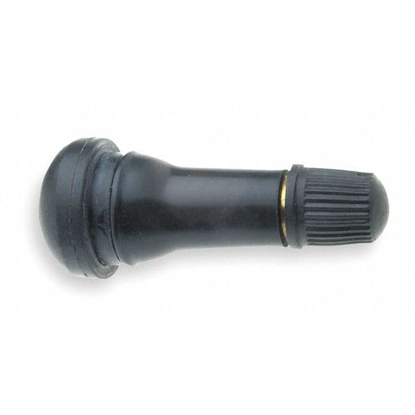 Snap-In Valve, Product Type Tire Valve, Mounting Type Snap-In, Valve Stem Angle 180 Degrees , Valve Shape Straight, Valve Size Standard Bore, Thread Size 0.305-32, Compatible Vehicle Type Golf Carts, Hand Trucks, Other Specialty Vehicles, Wheelbarrows, Minimum Operating Air Pressure 0 psi, Maximum Operating Air Pressure 60 psi, Color Black, Overall Length 1 1/4 in, Material Rubber, Includes Cap, Maximum Rim Hole Size 0.453 in, Standards TR413, Package Quantity 2
