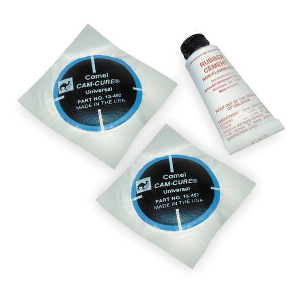 Tire Repair Kit, Product Type Tire Repair Kit, Compatible Tire Type Truck Tires, Includes (2) Universal Patches, 0.30 oz Cement, Number of Pieces 3, Maximum Safe Storage Temperature 100 Degrees F, Minimum Operating Temperature 32 Degrees F