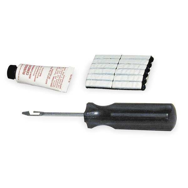 Tire Repair Kit, Product Type Tire Repair Kit, Compatible Tire Type Truck Tires, Includes (6) Strips, Cement, Open-Eye Needle, Number of Pieces 3, Maximum Safe Storage Temperature 100 Degrees F, Minimum Operating Temperature 32 Degrees F