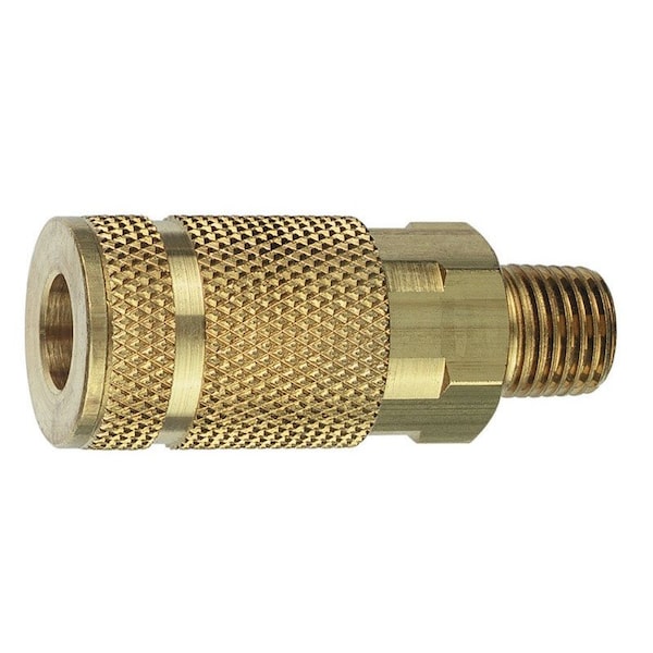 Air hose couplers Aro design - standard sleeve 1/4 inch body series male NPT 1/4 inch. Due to their large size, do not connect or disconnect if the line pressure exceeds 40 PSI. Intended for compressed air lines only. 300 PSI maximum rated working pressure.