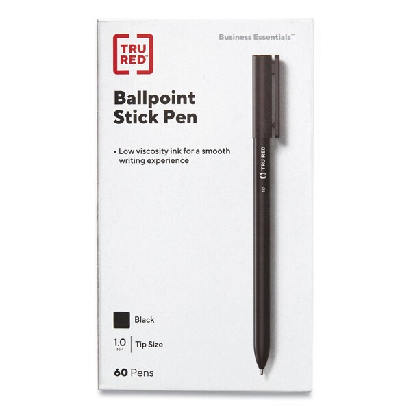 Ballpoint Pen, Stick, Medium 1 mm, Black Ink, Black Barrel, 60PK