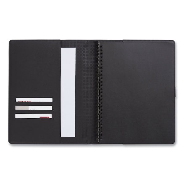 Brainstorm with co-workers and keep track of important appointments. Refillable, leather-like folio cover features handy business-card slots and a pen/pencil holder to keep everything you need neatly together. Wirebound executive notebook helps you make a statement with its bold yet professional design. Twin-wire coil binding enables effortless page turning. Premium heavyweight paper ensures a smooth writing experience. Margin micro-perforations allow for neat and easy sheet removal.