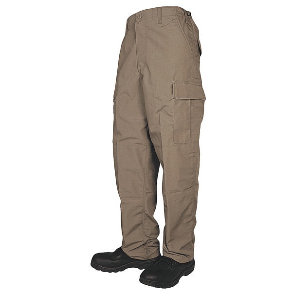 Men's Tactical Pants, Size 2XL, Coyote, Fits Waist Size 43 In. to 47 In., Garment Style Pants, Inseam 32 In., Material 65 Percent Polyester/35 Percent Cotton Ripstop with 91 Percent Nylon/9 Percent Spandex Accents, Binding YKK Zipper, Melamine Button, Fabric Weight 6.5 oz., Pockets 6, Includes Reinforced Seat and Knees, Fused Flaps, Nylon Drawstring Leg Ties