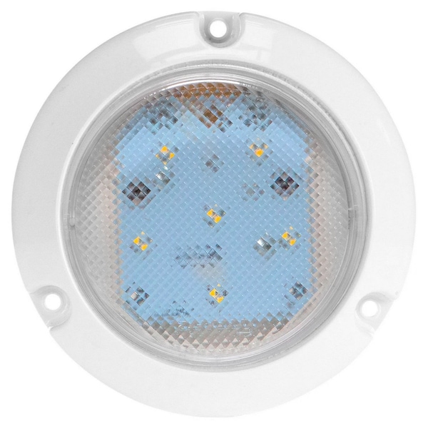 Super 44, Led, 6 Diode, Round Clear, Dome Light, White Flange Mount, Hardwired, Stripped End, 12V