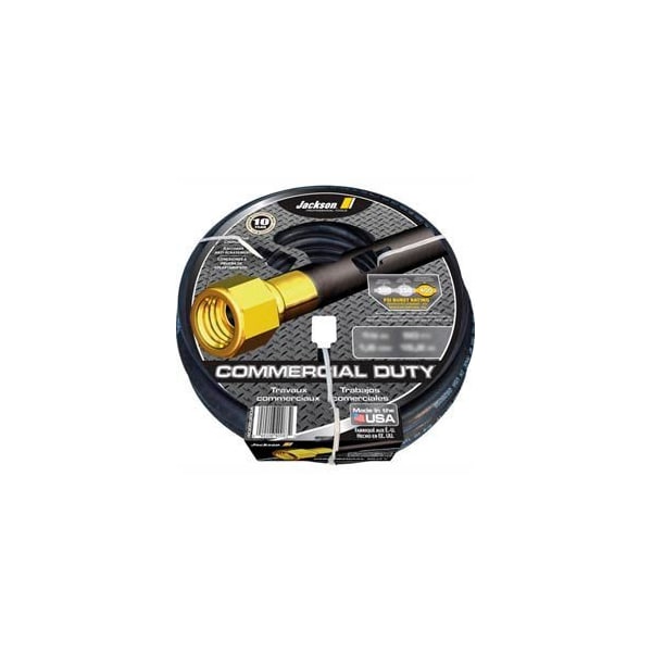 JACKSON® PROFESSIONAL TOOLS 5/8" X 100' RUBBER COMMERCIAL DUTY GARDEN HOSE THIS GARDEN HOSE FEATURES EDPM, A SPECIAL SYNTHETIC RUBBER BLEND THAT IS OPTIMIZED FOR WATER APPLICATIONS. MAXIMUM OPERATING TEMPERATURE AND PRESSURE OF 140 DEGREES AT 100 PSI MAKE THIS HOSE A STRONG CHOICE FOR CONTRACTORS , LANDSCAPERS, AND OTHER COMMERCIAL PROFESSIONAL END-USERS. FEATURES: