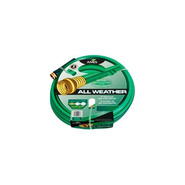 AMESĀ® 5/8" X 50' ALL-WEATHER GARDEN HOSE PREMIUM ALL-PURPOSE GARDEN HOSE WITH MANY FEATURES MAKE THIS HOSE A GREAT VALUE!! BEAUTIFUL GREEN/BLUE COLOR BLENDS WELL WITH EXTERIOR ENVIRONMENT. FEATURES: