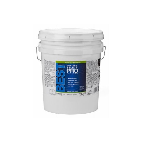 200SD, Painters Select Pro, Best, 5 Gallon, Deep Base, Interior Latex SemiGloss Wall Paint, Exceptional Durability With Excellent Hide Touchup, Mold Mildew Resistant, Apply With Brush, Roller Or Sprayer, Ideal For Walls Trim, Easy Soap Water Clean Up, Low VOC Less Than 5 Grams Per Litre