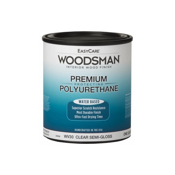 WV30QT, Easycare Woodsman, Quart, Clear, SemiGloss Water Based Poly Protective Finish, Hard Crystal Clear, Ultra Fast Drying Protective Finish, Has Very Little Odor Cleans Up With Water, Great Clarity Makes It Perfect For Use Over Light Woods Easycare Woodsman Wood Stains, 350 VOC