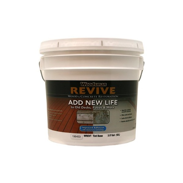 WREVT35G, Easycare Woodsman Revive, 35 Gallon, Tint Base, Ideal For Exterior Wood Concrete, Fills Cracks Holes, Locks Down Splinters, Resists Abrasion ' Traffic, Cleans Up With Soap Water, VOC Than 100 Grams Per Litre, Coverage Apply 2 Coats At The Rate Of 100 SQFT Per Gallon, Minimum Of 2 Coats, 50 SQFT Per Gallon When 2 Coats Applied