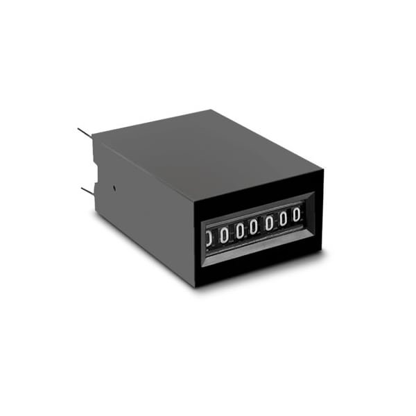 7 digit electromechanical counter, pcb mount, 24 VDC, 10 counts per second, 10.5in. wire leads