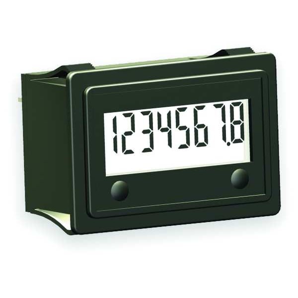 Hour Meter, Display Type LCD, Time Range 0 to 9999999.9, Bezel Face Size 1.60 in x 1.10 in, Bezel Face Shape Rectangular, Bezel Face Type Flush Mount, Elapsed Time To 999,999.9, Hz 50/60 Hz, Number of Digits 8, Display Units Hours/Tenths, Bezel To Back Length 0.75 in, Length 1.6 in, Width 1.1 in, Ambient Temp. Range -40 Degrees to 185 Degrees F, NEMA Rating 12, 4, 4X, Material of Construction -, Input Type 10 to 300 V DC or 20 to 300 V AC, Reset Type No Reset