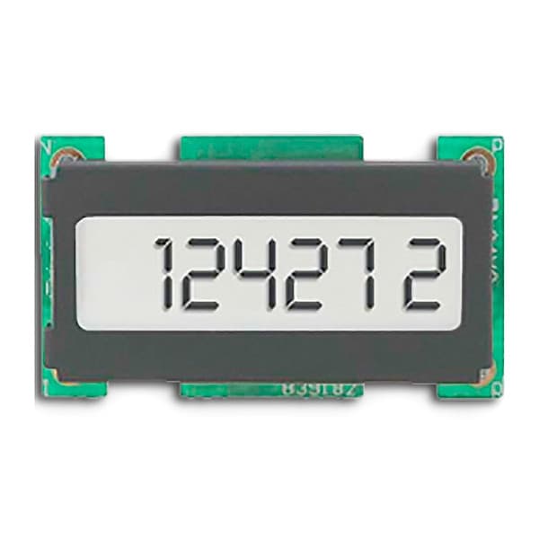 PCB Hour Meter, Number of Digits 6, LCD Display, Character Height 5 mm, Max. Counts per Second 100 Hz, Input Signal 8 to 28VDC, Output Rating Not Applicable, Mounting PCB, Diameter Not Applicable, Height 0.73 in, Width 1.28 in, Power Required 8 to 28VDC, Reset Type Remote Signal