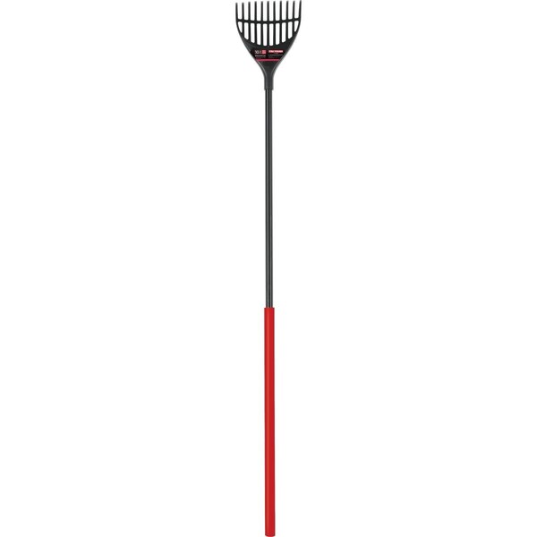 Optimized head design with 11 reinforced tines easily maneuvers under and around ornamental plantings. Ideal for removing debris from under shrubs fences trees and other tight places. 56 In. steel handle with comfort grip.