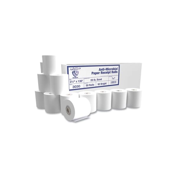 This paper roll is treated with silver ion technology to provide antimicrobial product protection against unwanted microorganisms. It protects the paper from microbial transfer and growth, creating a barrier to inhibit the growth of microorganisms. Sheet/Roll Size: 2.25in x 130 ft; Paper Basis Weight lb: 20 lb Bond; Paper/Media Colors: White; Color Family: White.
