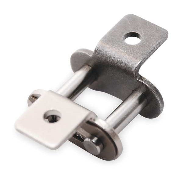 Attachment Link, Attachment Number K-1, Attachment Type Tab, Material Steel, Chain Overall Width 1.543 in, Chain Number C2080H, Roller Diameter 5/8 in, Finish Black Oxide, Pitch 2 in, Link Type Attachment, Centerline to Attachment End 0.823 in, Centerline to Hole Center 0.72 in, Extended Pin Diameter 0.312 in, Lubrication Self Lube, Maximum Operating Temperature 302 Degrees F, Minimum Operating Temperature 14 Degrees F, Number of Tab Holes 1, Pin Contruction Cottered Pin, Plate Height 0.906 in