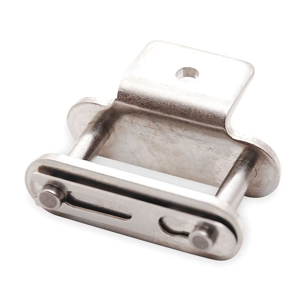 Attachment Link, Attachment Number A-1, Attachment Type Tab, Material Stainless Steel, Chain Overall Width 1.543 in, Chain Number C2080H, Roller Diameter 5/8 in, Finish Plain, Pitch 2 in, Link Type Attachment, Centerline to Attachment End 0.823 in, Centerline to Hole Center 0.72 in, Extended Pin Diameter 0.312 in, Lubrication SAE 10 to SAE 50, Material Grade 600, Maximum Operating Temperature 750 Degrees F, Minimum Operating Temperature -40 Degrees F, Number of Tab Holes 1