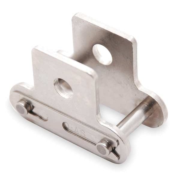 Attachment Link, Attachment Number SK-1, Attachment Type Tab, Material Stainless Steel, Chain Overall Width 0.717 in, Chain Number C2040, Roller Diameter 19/64 in, Finish Plain, Pitch 1 in, Link Type Attachment, Attachment Location Two Sides, Centerline to Attachment End 0.78 in, Centerline to Hole Center 0.437 in, Chain Construction Riveted Pin, Extended Pin Diameter Not Applicable, Heavy Series No, Inside Width 19/64 in, Lubrication SAE 10 to SAE 50, Material Grade 600
