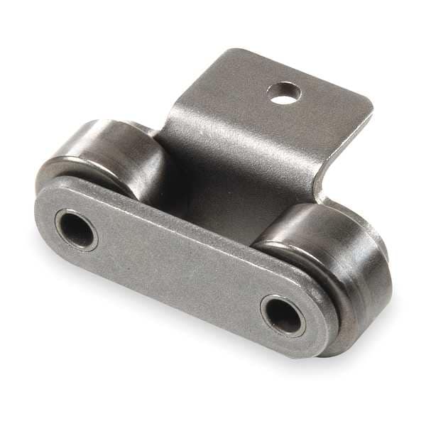Roller Attachment Link, Attachment Number A-1, Attachment Type Tab, Material Steel, Chain Overall Width 0.878 in, Chain Number C2052, Roller Diameter 3/4 in, Finish Plain, Pitch 1 1/4 in, Link Type Roller Attachment, Centerline to Attachment End 0.469 in, Centerline to Hole Center 0.406 in, Extended Pin Diameter 0.2 in, Lubrication SAE 10 to SAE 50, Maximum Operating Temperature 300 Degrees F, Minimum Operating Temperature 15 Degrees F, Number of Tab Holes 1, Pin Contruction Riveted Pin