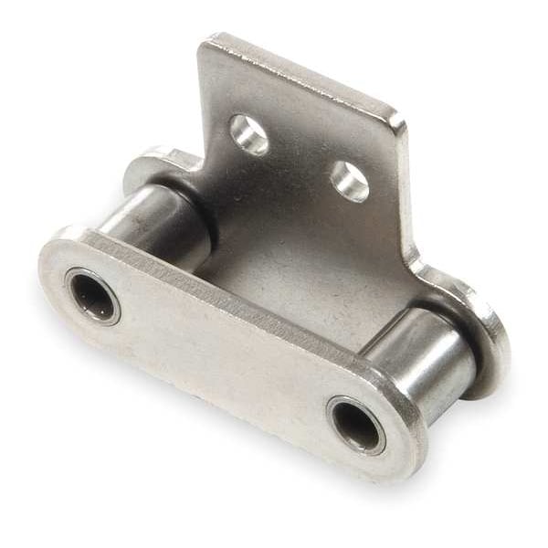 Roller Attachment Link, Attachment Number SA-2, Attachment Type Tab, Material Stainless Steel, Chain Overall Width 1.225 in, Chain Number C2060H, Roller Diameter 15/32 in, Finish Plain, Pitch 1 1/2 in, Link Type Roller Attachment, Centerline to Attachment End 0.652 in, Centerline to Hole Center 0.573 in, Extended Pin Diameter 0.234 in, Lubrication SAE 10 to SAE 50, Material Grade 600, Maximum Operating Temperature 750 Degrees F, Minimum Operating Temperature -40 Degrees F, Number of Tab Holes 1