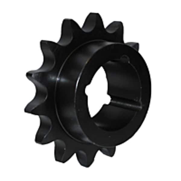 Sprocket, For Bushing Size 1210, For Bushing Type Taper Lock, For Chain Pitch 1/2 in, Material Steel, Number of Teeth 19, Outside Diameter 3.296 in, Pitch Diameter 3.038 in, Chain Number 40, For Number of Strands Single, Maximum Bore Diameter 1 1/4 in, Finish Black Oxide, For Pitch Type Single Pitch, Hub Diameter 2 15/32 in, Hub Projection 0.716 in, Hub Type One Side, Length through Bore 1 in, Material Grade 1045, Minimum Bore Diameter 1 1/4 in, Resistance Properties Corrosion Resistant