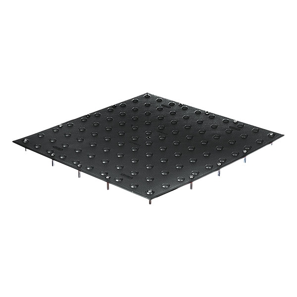 Tactile Warning Tile, ADA Compliant Yes, Installation Method Surface Applied, Wet Set, Installation Surface Concrete, Material Polymer, Length 2 ft, Width 4 ft, Thickness 3/16 in, Color Black, Weight 10 lb, Surface Installation Method Fastener, Includes Assembly Hardware, Includes Installation Hardware Yes, Dome Spacing 2.4 in, Replaceable Yes, Standards ADAAG, Surface Design In-Line Truncated Domes