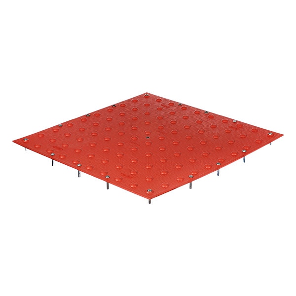 Detectable Warning Tile, ADA Compliant Yes, Installation Method Surface Applied, Wet Set, Installation Surface Concrete, Material Polymer, Length 24 in, Width 36 in, Thickness 3/16 in, Color Brick Red, Weight 7.5 lb, Surface Installation Method Fastener, Includes Assembly Hardware, Includes Installation Hardware Yes, Dome Spacing 2.35 in, Replaceable Yes, Standards ADAAG, Surface Design In-Line Truncated Domes