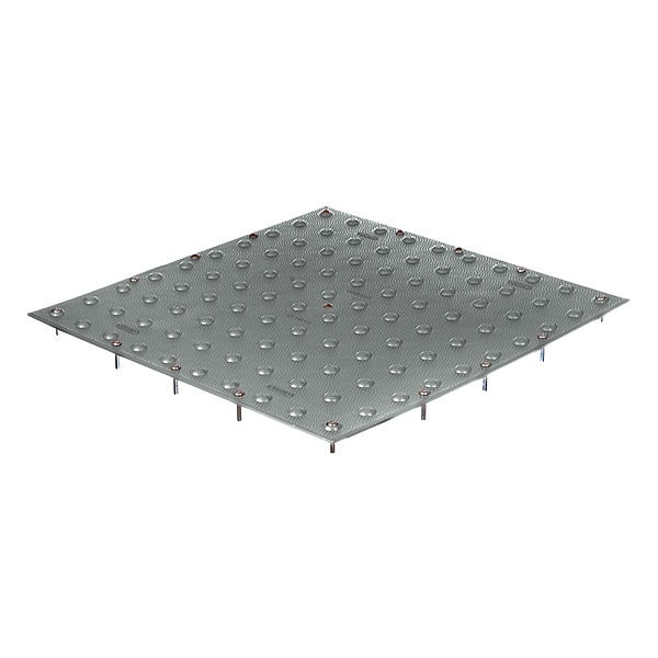 Detectable Warning Tile, ADA Compliant Yes, Installation Method Surface Applied, Wet Set, Installation Surface Concrete, Material Polymer, Length 24 in, Width 24 in, Thickness 3/16 in, Color Gray, Weight 5.1 lb, Surface Installation Method Fastener, Includes Assembly Hardware, Includes Installation Hardware Yes, Dome Spacing 2.35 in, Replaceable Yes, Standards ADAAG, Surface Design In-Line Truncated Domes