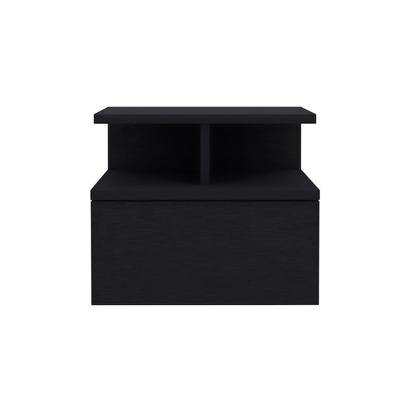 Adele Floating Nightstand, Drawer, Open Top Shelves, Black