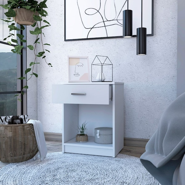 Eco Nightstand, Superior Top, One Drawer, Lower Shelf, White