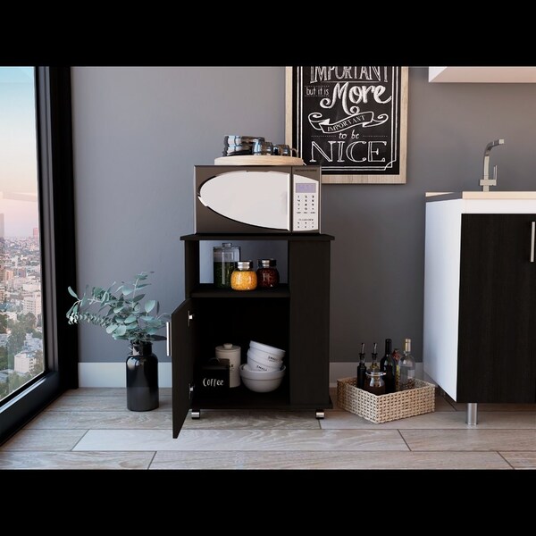 Kit Lower Microwave Cabinet, Single Door, Three Side Shelves-Black