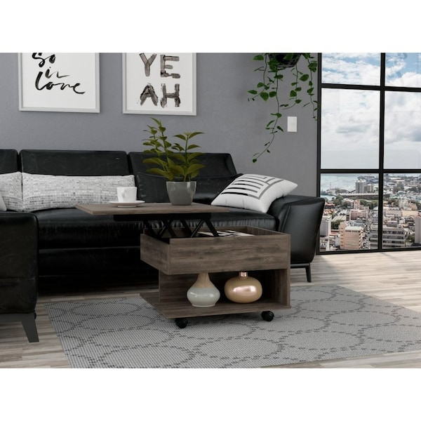 Luanda Lift Top Coffee Table, Casters, One Shelf, Dark Brown