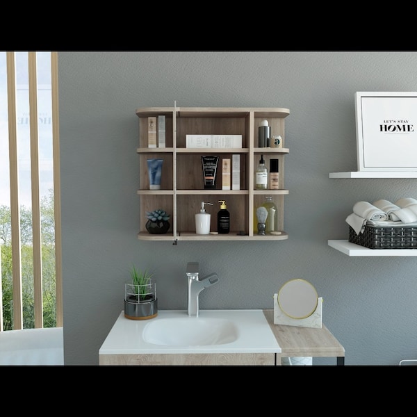 If you're looking for extra storage in your bathroom, even in the smallest, the Tuhome Wall Cabinet features is the perfect touch that you require! With a modern, stylish design and Light Gray manufactured wood finish, this cabinet is made to last and withstand the conditions of humidity in a bathroom. Two concealed shelves and two open shelves5,7 in. H X 10,6 in. W Provide you with a very modern and attractive storage option for your bathroom. Ready and easy to assemble for your convenience.Producrt dimensions 11,81 in. W X 10,04 in. D X 32,17 in. H