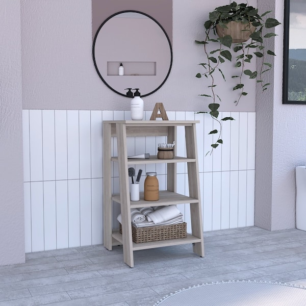 St. Clair Linen Cabinet, Two Interior Shelves, Two Open Shelves, Single Door, Light Gray