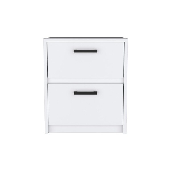 Looking for a stylish and functional nightstand for your bedroom Look no further than the Trivor 2 Drawer Nightstand. This piece features two spacious drawers for storage, plus a top surface that provides plenty of room to keep your essentials within easy reach. And to make it even more convenient, the nightstand has sturdy metal handles. So whether you're looking for a place to store clothes or a handy spot to keep your alarm clock and book, the Trivor 2 Drawer Nightstand is perfect.Designed with an elegant white manufactured wood finish.Dimensions:Height: 18,58 in. Width: 15,75 in. Depth: 12,72 in.Furniture Type: Ready to assemble full assembly required.Certifications: CARB phase II compliant - TSCA Title VI Compliant.