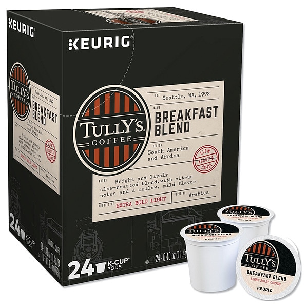 Coffee, Net Weight 2.4 lb, Beverage Package Style Pod, Coffee Roast/Tea Type Light, Package Weight 0.4 oz, Sub-Brand Tully's Coffee(R), Beverage Flavor Breakfast Blend, Product Type Coffee, Caffeine Type Caffeinated, Beverage Format Ground, Package Quantity 96
