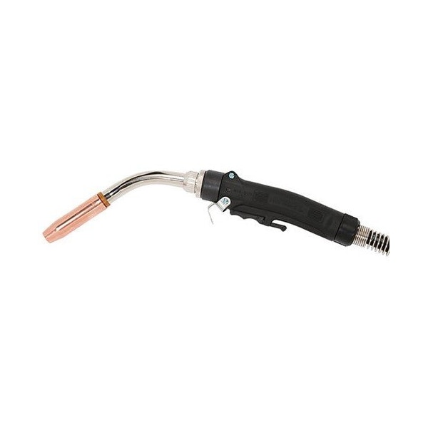 Tweco Eliminator 15' MIG Gun is ideal for wire size from 0.04 - 0.045. Air-cooled gun with 4 trigger wires is suitable for application requiring current rating of 250 A and is designed for variety of applications. MIG gun is equipped with dual spring and rubber strain reliefs on both ends and comes with Miller style rear connection.