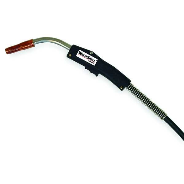 MIG Gun, MIG Gun Type Air-Cooled, Cooling Method Air-Cooled, Series WeldSkill WM 250, Maximum Current 250 A, Duty Cycle 60 Percent, For Gas Type CO2 (Carbon Dioxide), Maximum Wire Diameter 0.045 in, Cable Length 15 ft, For Rear Connection Type Miller-Compatible, Handle Type Curved, Trigger Type Standard, Neck Tube Type Fixed, Neck Tube Angle 60 Degrees , For Wire Type Aluminum, Solid, Model WM250M-15-4045, Tip Series WS14, Welding Processes MIG Welding (GMAW)
